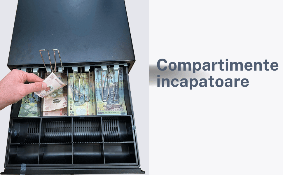 Sertarul pentru bani este compartimentat astfel:
