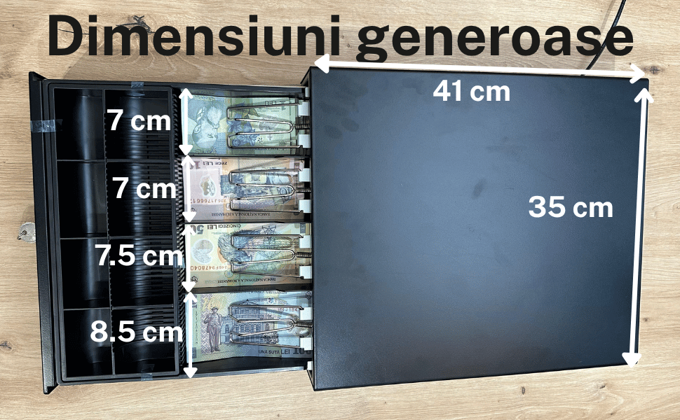 Sertarul de bani poate fi deschis cu ajutorul celor 2 chei sau poate fi conectat la o casa de marcat, astfel incat in momentul emiterii bonului se deschide sertarul automat.