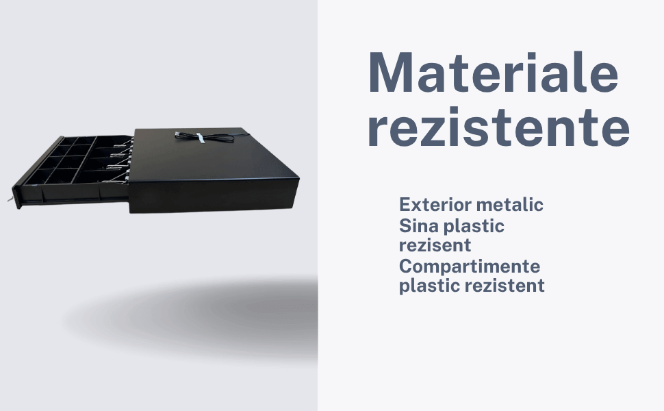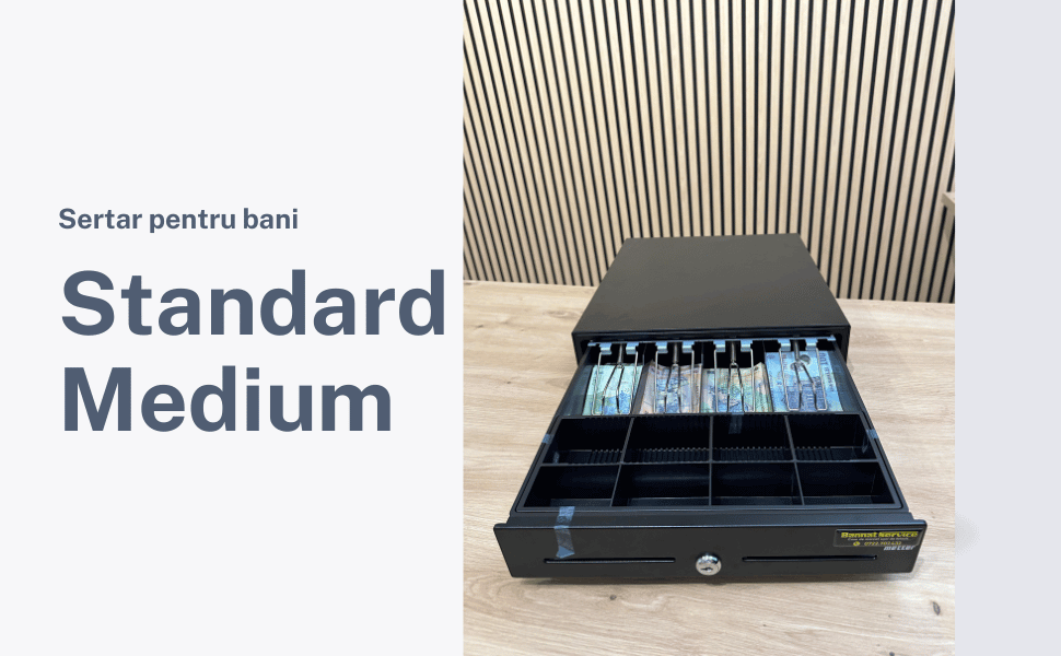 Sertarul de bani Standard Medium este un sertar foarte fiabil, de calitate ridicata, fiind confectionat din metal la exterior si de plastic foarte rezistent la interior.