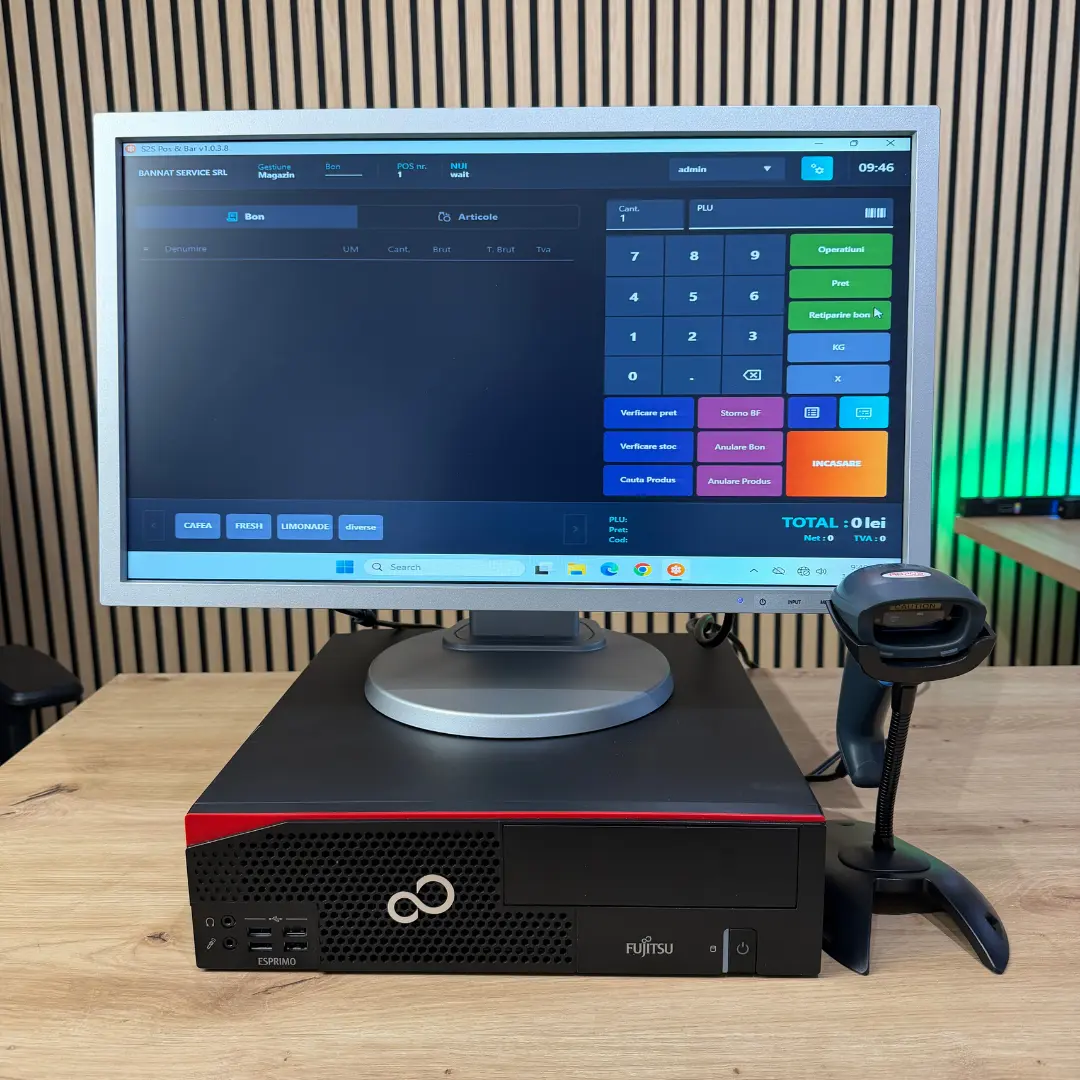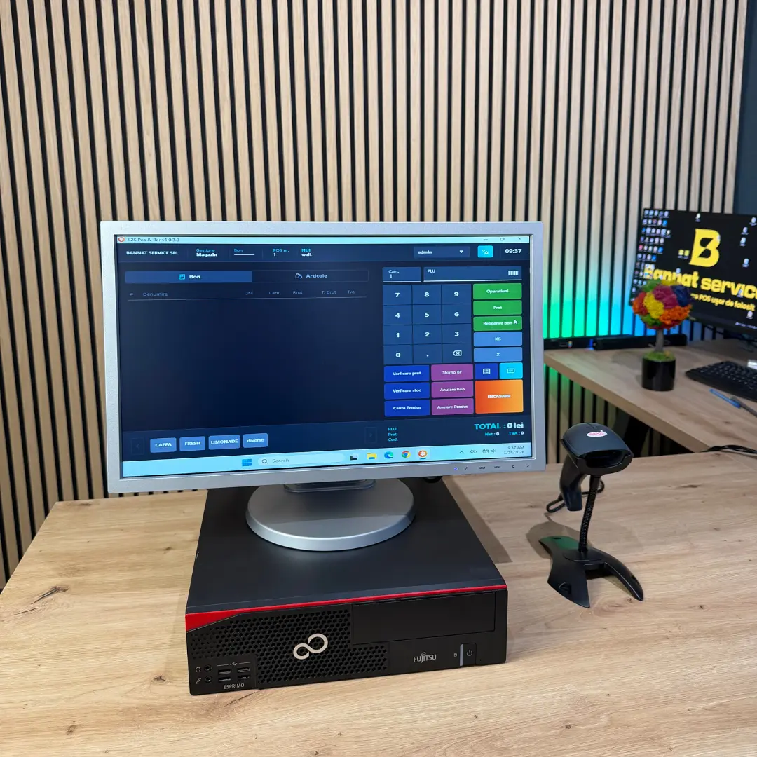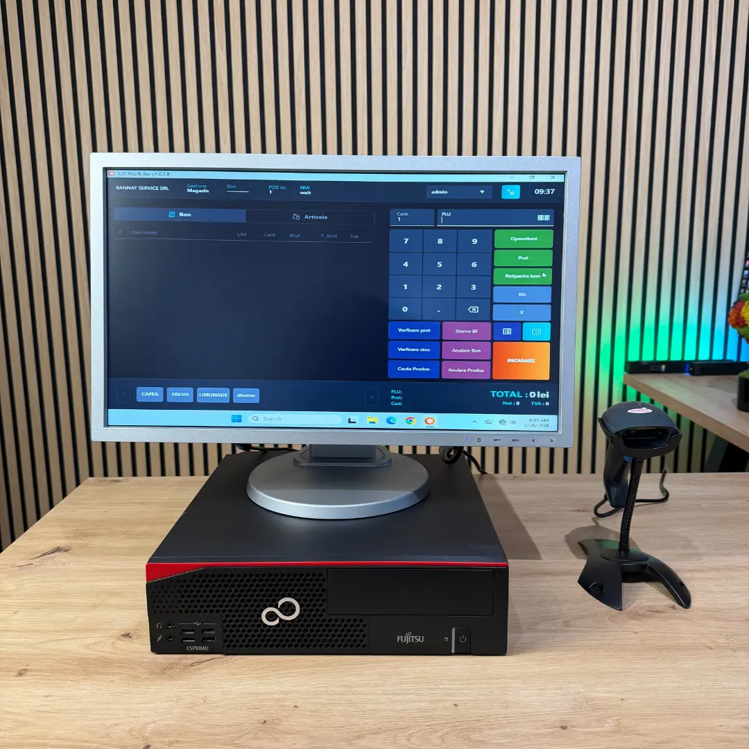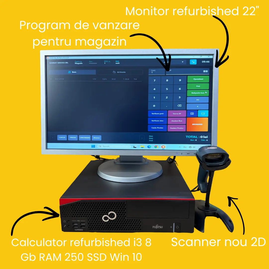 calculator refurbished pentru magazine, testat și configurat pentru utilizare comercială, capabil să ruleze fluent programul de vânzare. Are un procesor i3 generatia 7 sau mai nou, 8 Gb RAM, 250 SSD si Windows 10. Calculatorul este performant si rapid ca sa te ajute real.
