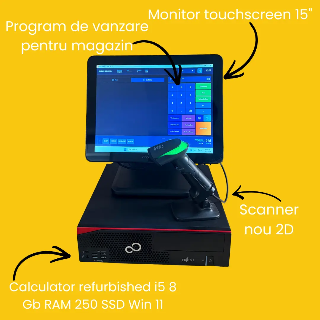 Operarea se face printr-un monitor touchscreen POS nou, care accelerează procesul de vânzare și reduce erorile.